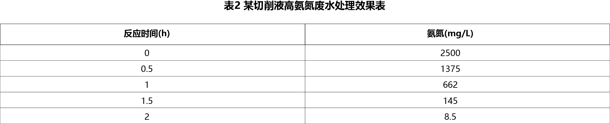 表1表2为两家企业高氨氮废水原水氨氮浓度很高,在前端没有其余辅助情况下紧急采用UED设备处理,分别反应3小时和2小时后达到10mg/L以下水平,符合当地环保要求,表明该设备对该类型废水具有良好的去除能力,且该设备反应平台搭建快、调试难度低。